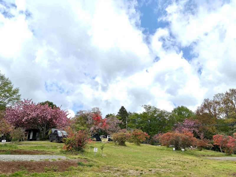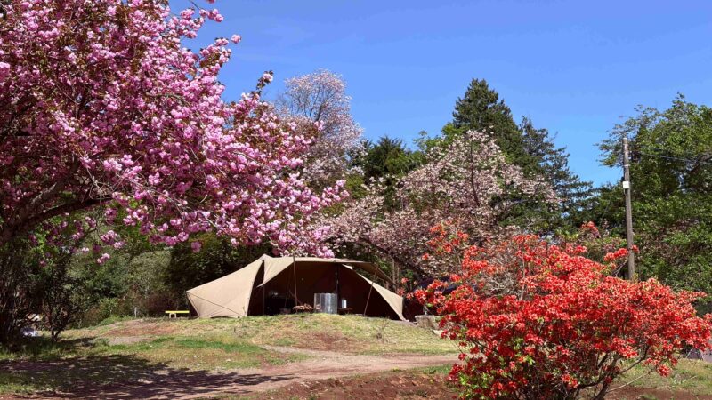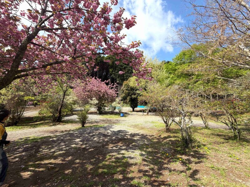 山の中のペットサイトは目の前に八重桜があって4月頃はめっちゃおすすめ