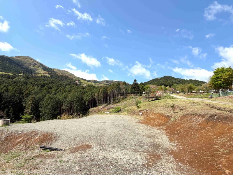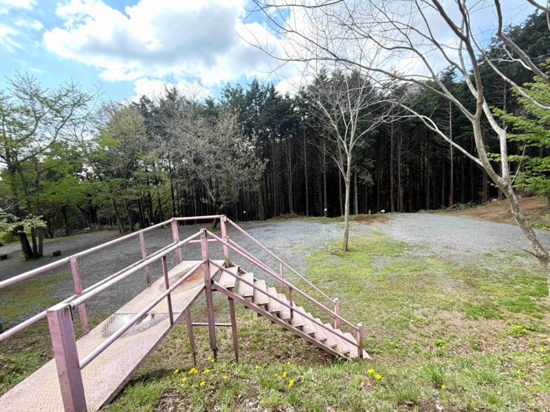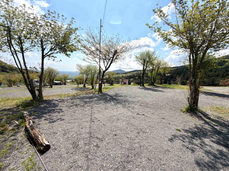 山側に向かってサイトが並んでいて、山のラインを楽しめるし夕焼け空を眺めやすいサイト