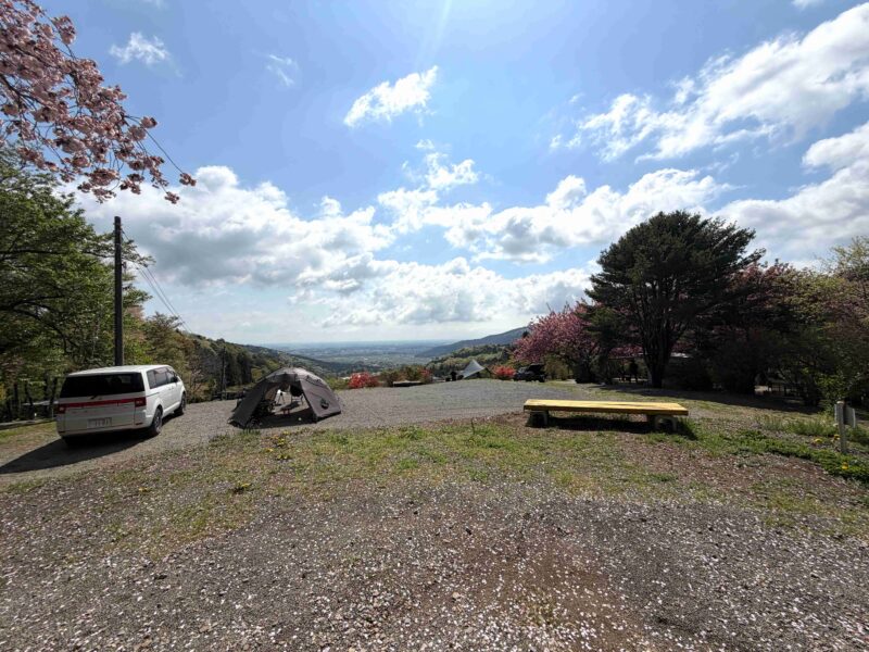 桜を求めて行ってみたキャンプ場だったけど、市街地を眺められるロケーションが最高だった!