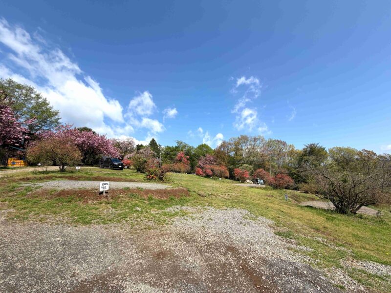 このあたりはソメイヨシノや八重桜が楽しめるし、場内で一番高い位置にあるサイトだから長めは最高