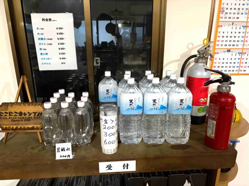 受付内で販売されているのは、薪・水・ガス管・炭といった最低限ももののみ