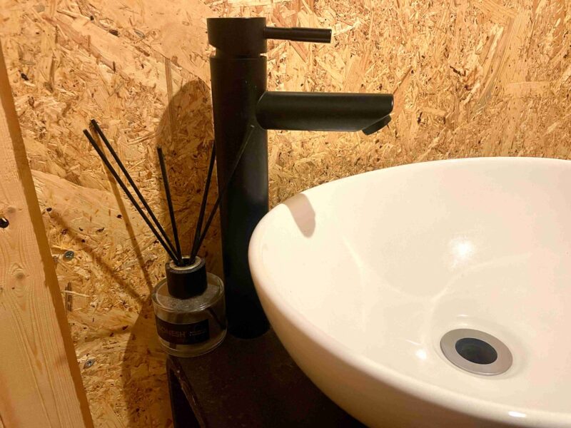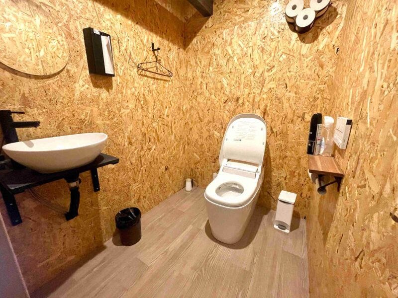 個室内には手洗い流しも備え付けてあるから広くて冬場のモコモコ状態でもゆったり利用できるよ