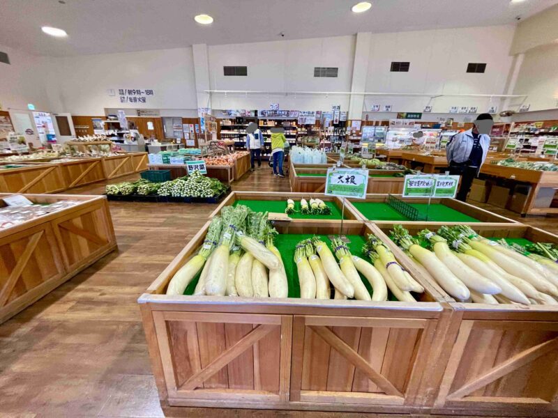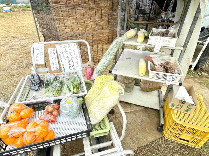 キャンプ場の向かい側にある無人販売で、野菜が100円で売っていたよ!