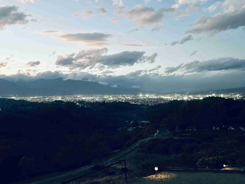 山梨県笛吹市にあって、サイトからは甲斐市や南アルプス方向の市街地の夜景が楽しめちゃう ”絶景” を堪能できちゃうんだよ✨