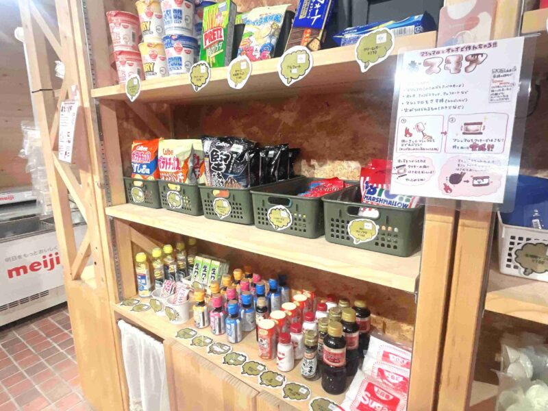 センターハウスの中には、かなり充実した品揃えでガス缶からお菓子におもちゃ類まで揃ってた!