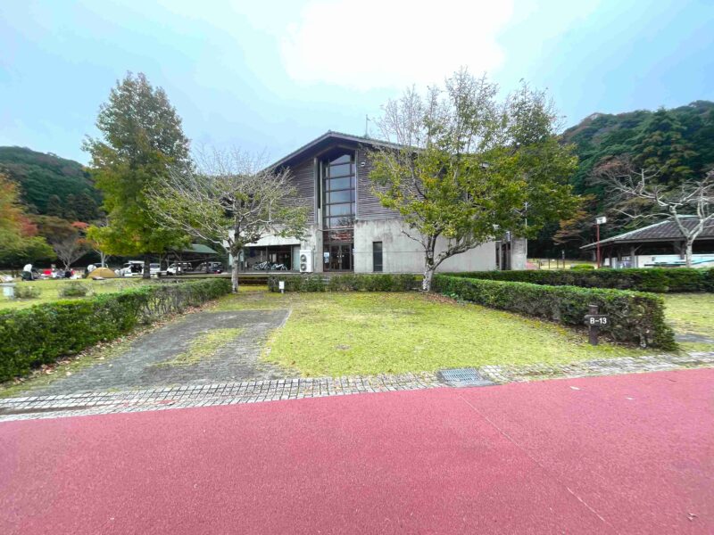 受付のセンターハウスは、キャンプ場に入ってまっすく進むと目に付く大きな建物!