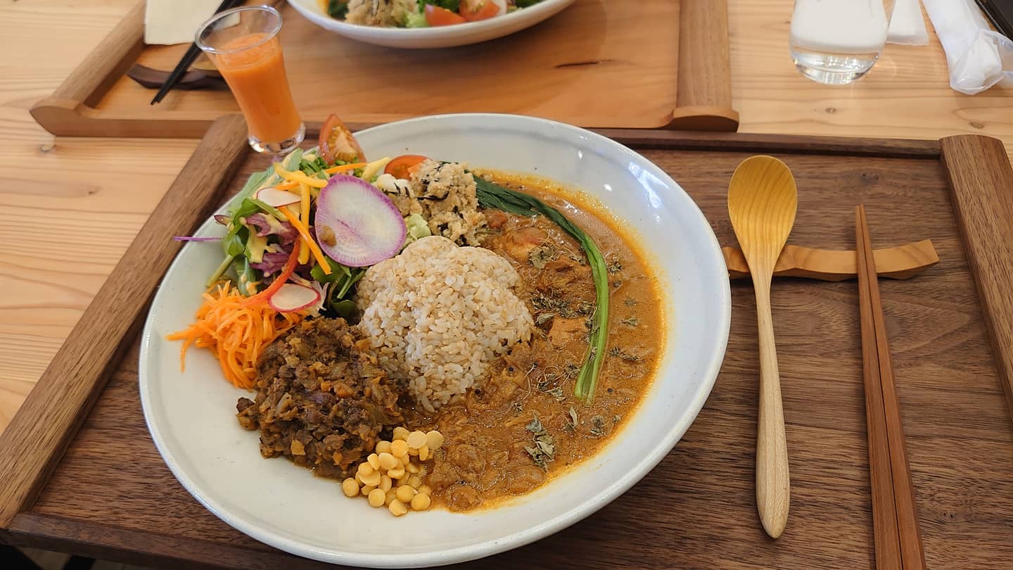 ライスはターメリックか金のいぶき(+¥100)玄米を選ぶことができます。