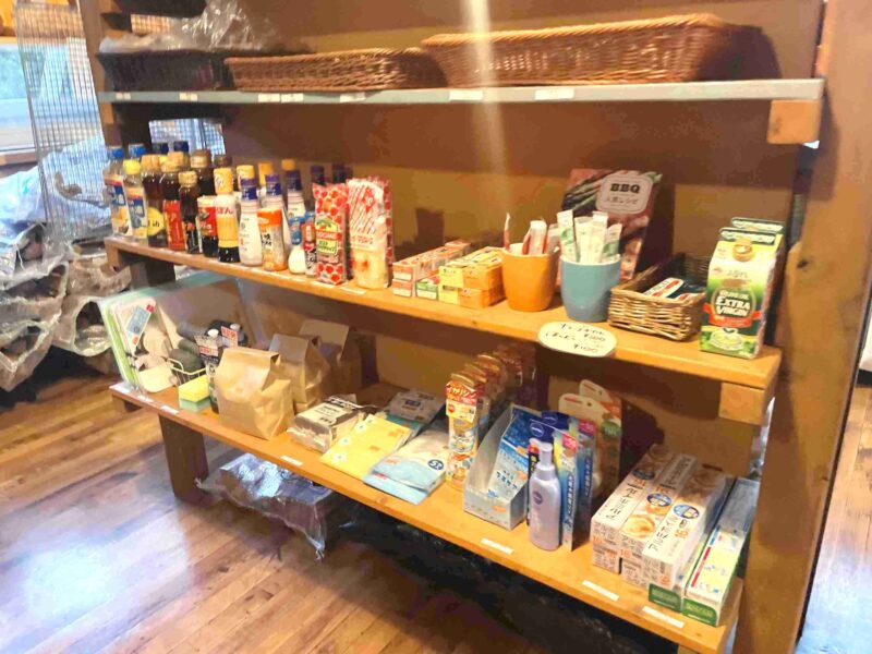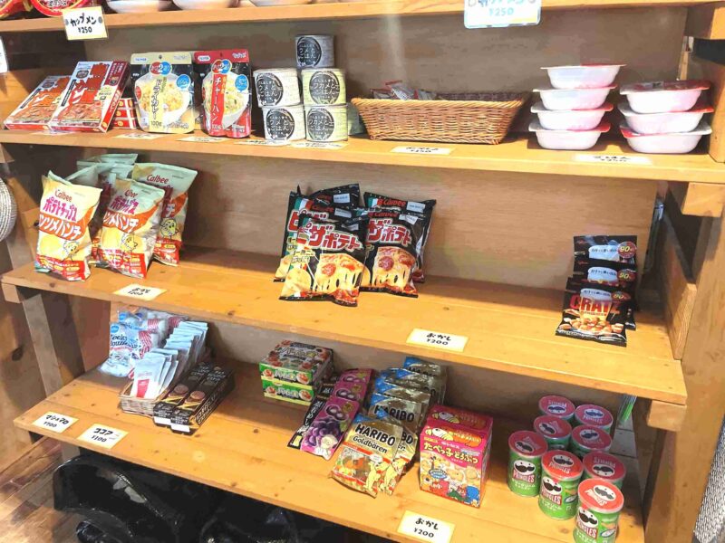 受付内ではちょっとしたキャンプ用品からお菓子にがあったり、割と困らなさそう!