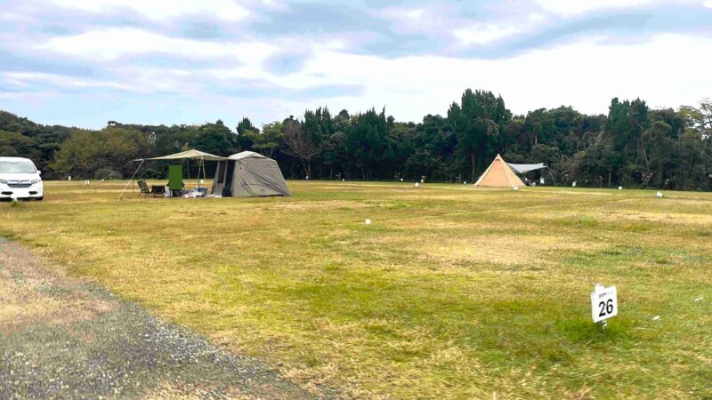 サイトのサイズ感は、横幅は約8m・縦は10mはあるくらいの大きなサイトで大型テントも余裕すぎる!