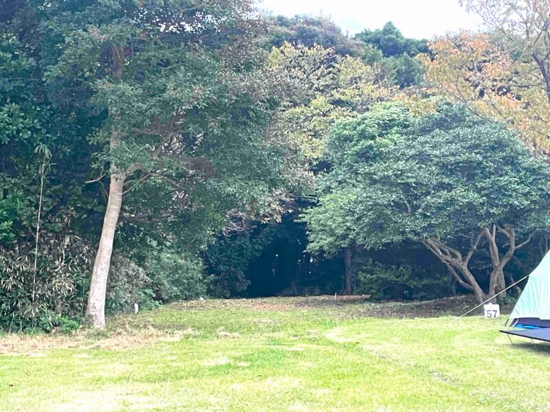 キャンプサイトには森林エリアもあって、木々の隙間から海を感じられるがなんだかいい雰囲気だった!