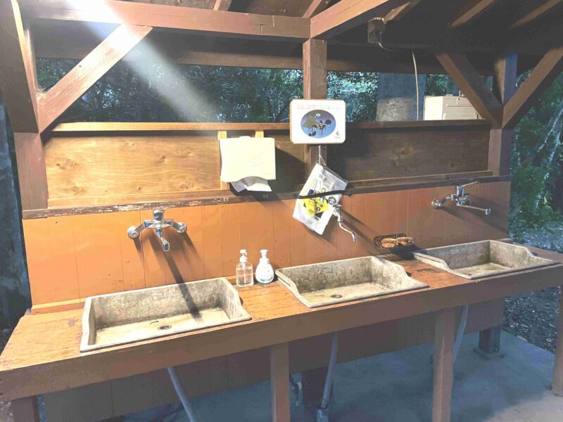 この水場だとお湯は使えないけど、サッと洗い物したり手を洗ったりすぐできるのが嬉しいポイント!
