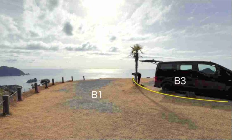 B1サイトは、正面の海に対して縦長なサイトで左側は邪魔なものがないからA2同様、視野的に南側の海も含めて広く楽しめる!